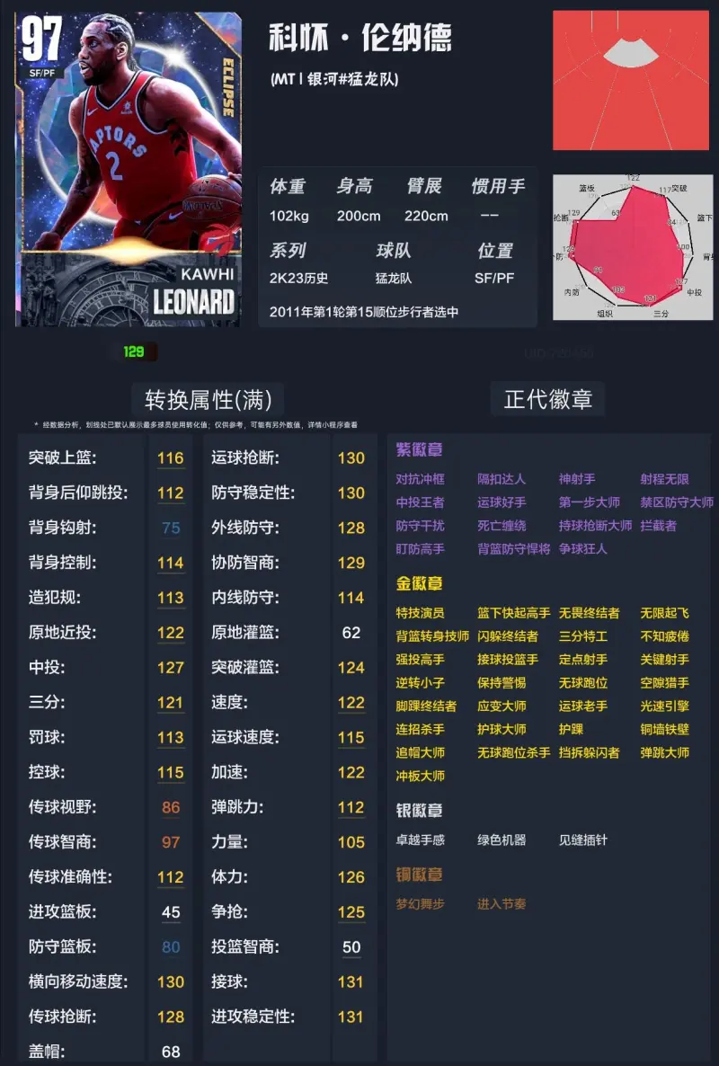 缺點(diǎn):1歷史地位不高。2馬刺版本仍未出,硬上猛龍奪冠版本后,之后馬刺卡不太好再做為X系卡皇上線。3倫納德的三模式功能相對單一。