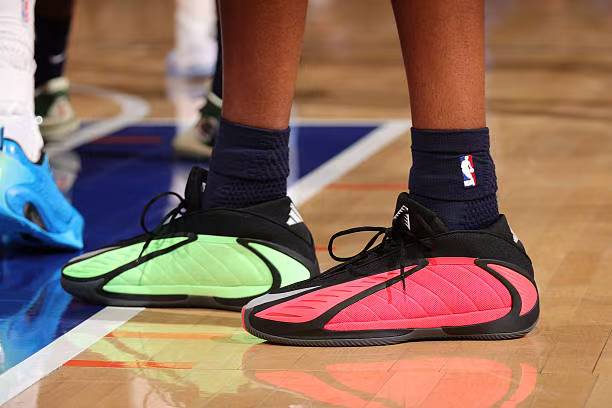 比賽中,獻(xiàn)分莫布利上腳圣誕配色adidas AE2。助攻