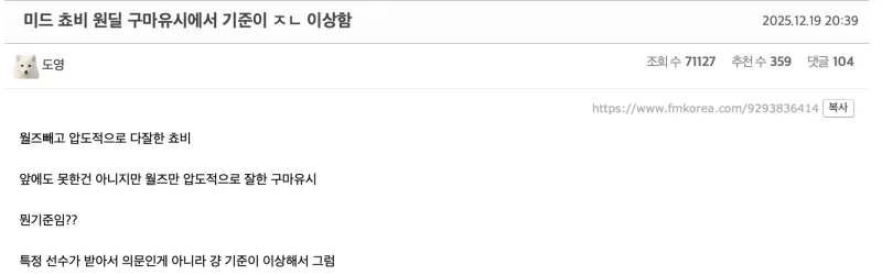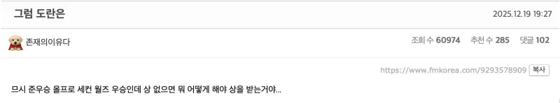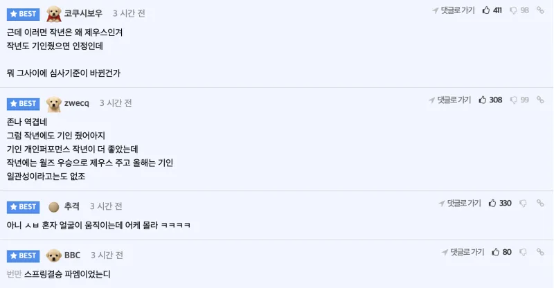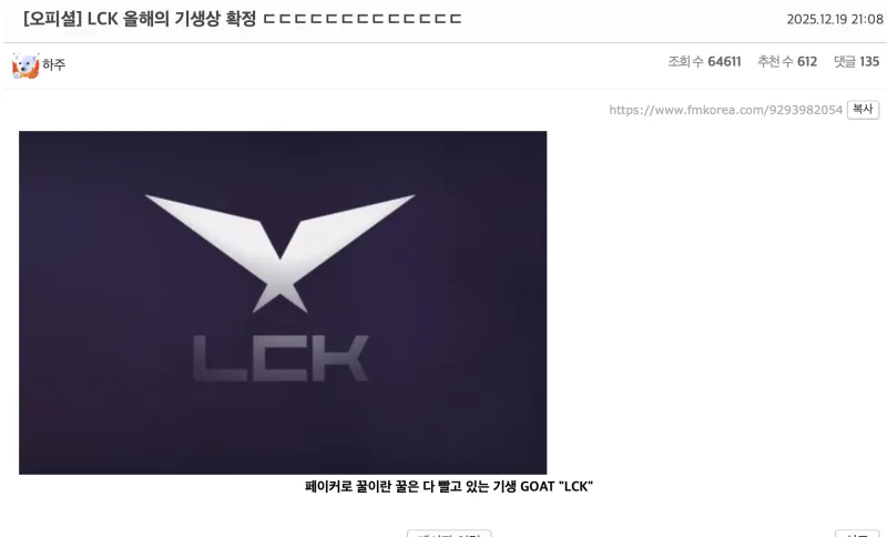 虎撲12月19日訊 2025 LCK Award結(jié)束后,韓國FMKOREA論壇網(wǎng)友對此展開熱議,熱議部分熱門評論翻譯如下:(未經(jīng)允許禁止轉(zhuǎn)載,獎典獎搬運截圖)