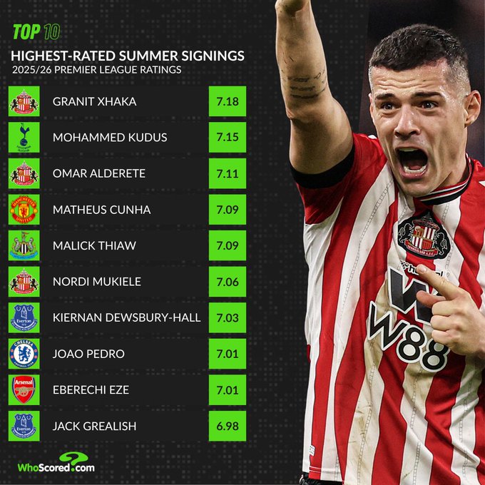 [流言板]英超夏窗新援聯(lián)賽場(chǎng)均評(píng)分:扎卡第1,板英庫(kù)杜斯第2,超夏窗新庫(kù)尼亞第4由虎撲足球資訊 發(fā)表在國(guó)際足球資訊 https://bbs.hupu.com/482