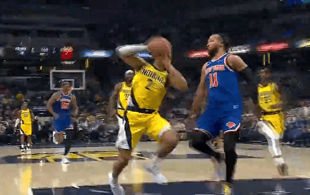 虎撲12月19日訊 NBA常規(guī)賽,步行者主場迎戰(zhàn)尼克斯的板內(nèi)布倫比賽正在進行中。