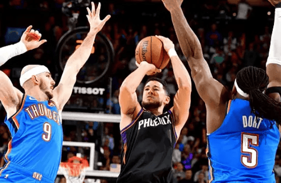 太陽球員德文-布克全場出戰(zhàn)38分鐘,11投5中,三分4中1、罰球15中13得到24分6籃板9助攻。