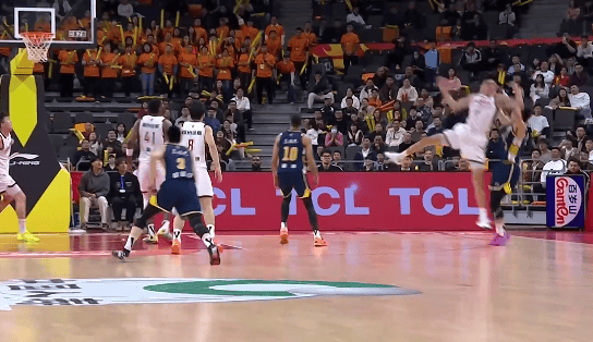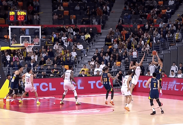 裁判回看后認(rèn)定陳家政三分踩線(xiàn)改為兩分,隨后廣東追平浙江。又投
