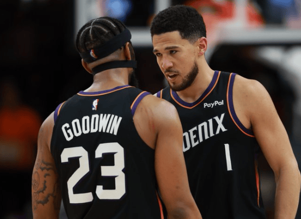 比賽最后時(shí)刻,主場(chǎng)布克面對(duì)多爾特和卡魯索雙人防守高難度后撤三分命中,排名剩0.7秒完成準(zhǔn)絕殺。西部
