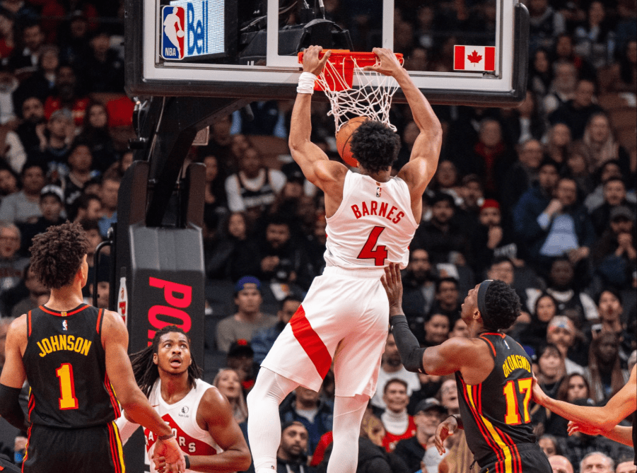本場(chǎng)比賽,科蒂猛龍球員斯科蒂-巴恩斯出戰(zhàn)36分鐘,16投8中,其中三分球3投0中,罰球2投2中,得到18分8籃板10助攻。