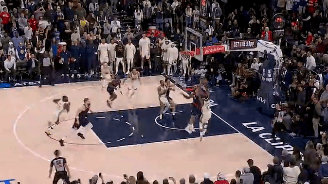 第四節(jié)比賽,身后士分巴特勒最后時(shí)刻翻身后仰跳投不中,仰跳勇士1分不敵快船。中勇