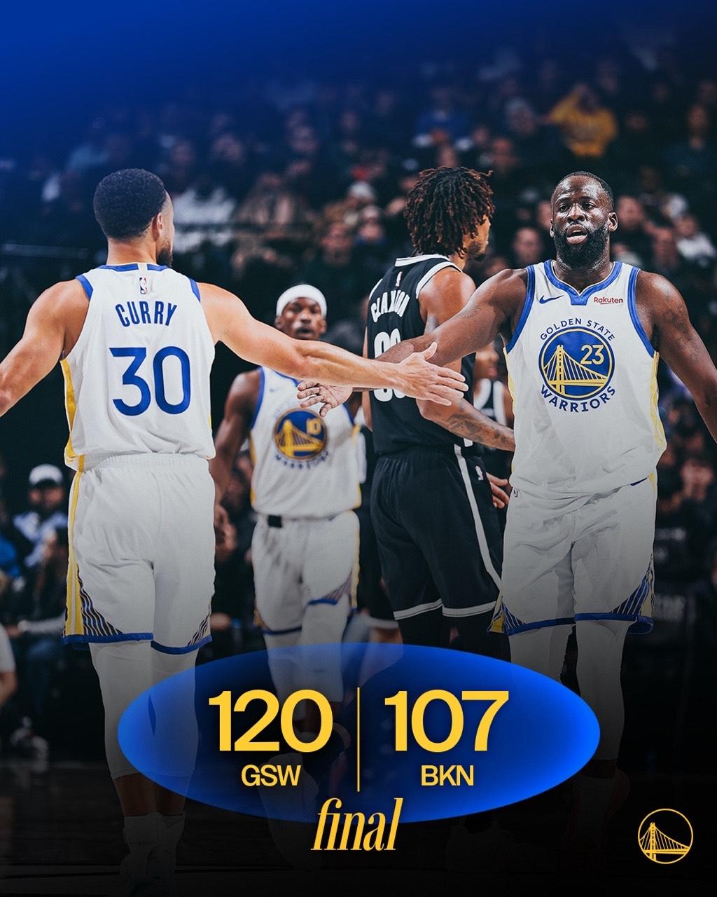 虎撲12月30日訊 今日NBA常規(guī)賽:勇士客場(chǎng)120-107戰(zhàn)勝籃網(wǎng)。