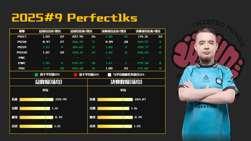 但相比排名更高的選手,Perfect1ks的數據還是毫無優(yōu)勢可言,因此他的排名也只能止步于此。