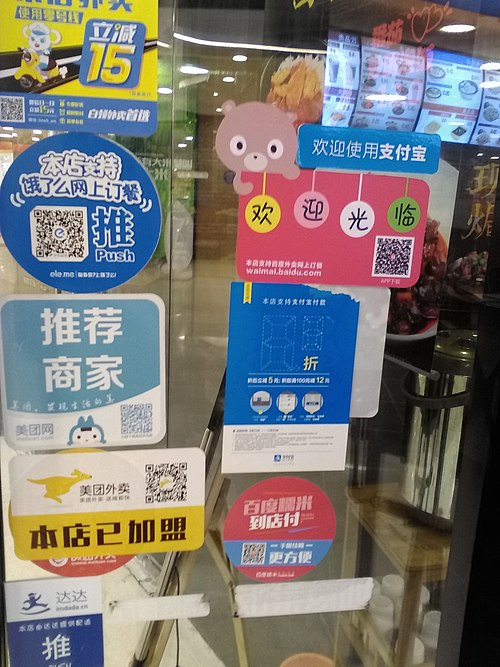 外賣大戰(zhàn)時期餐廳門口會貼的各式各樣的推廣