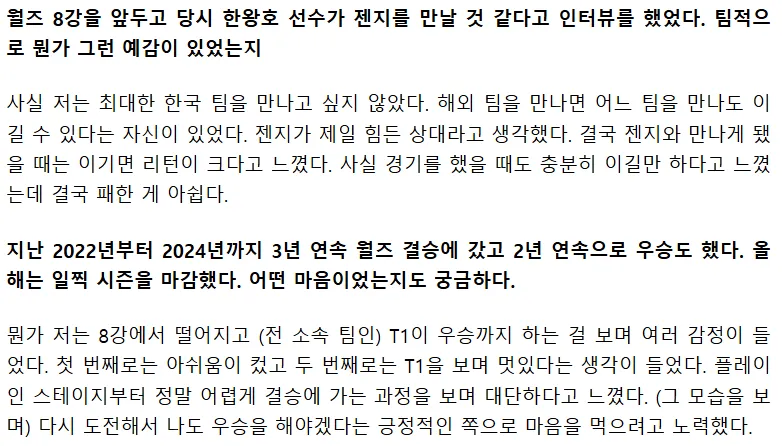 Q:全球總決賽八強賽前,當時韓旺乎選手在采訪中表示感覺會碰上GEN。團隊方面是否有這樣的預(yù)感呢?