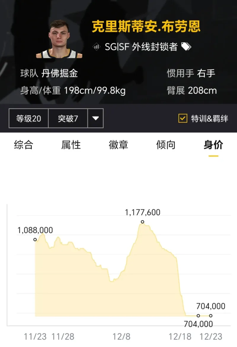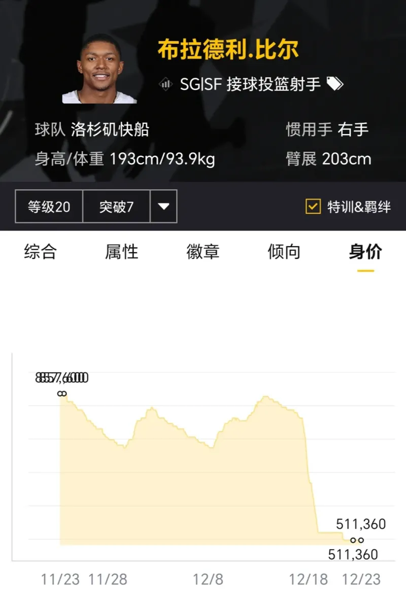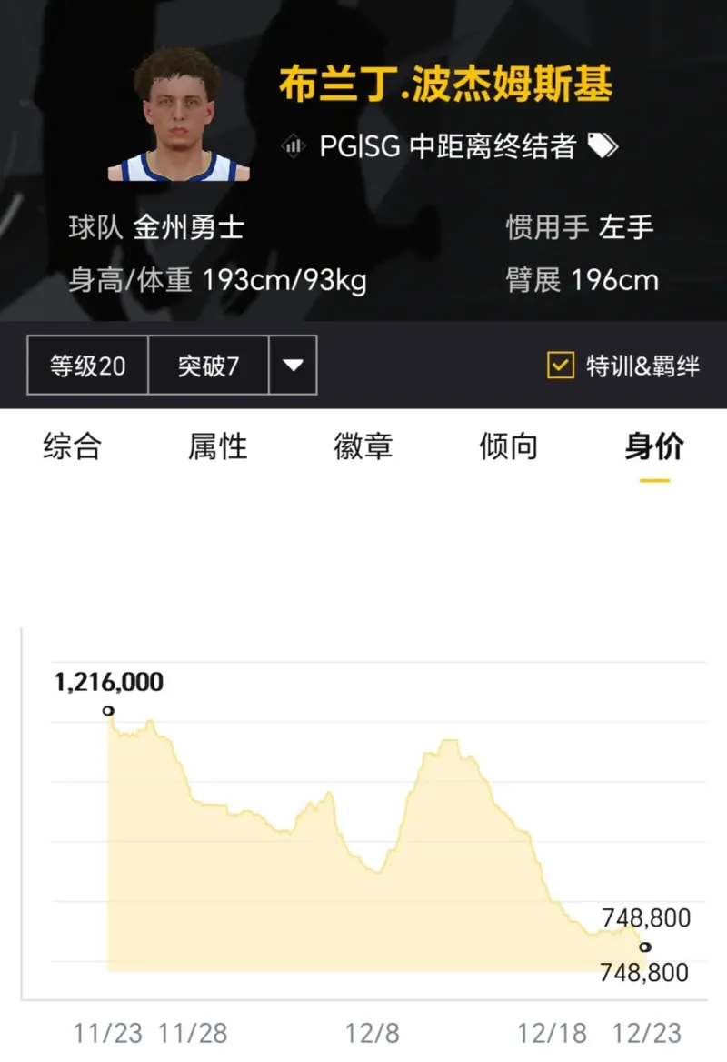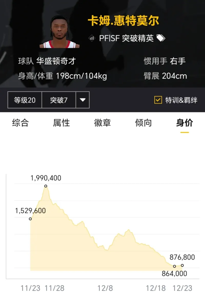 賽季開(kāi)始時(shí)滿突身價(jià)300多萬(wàn),如今滿突身價(jià)百萬(wàn)以內(nèi),曾經(jīng)也算是高價(jià)新秀,如今對(duì)他有所期待的玩家已經(jīng)不多了。