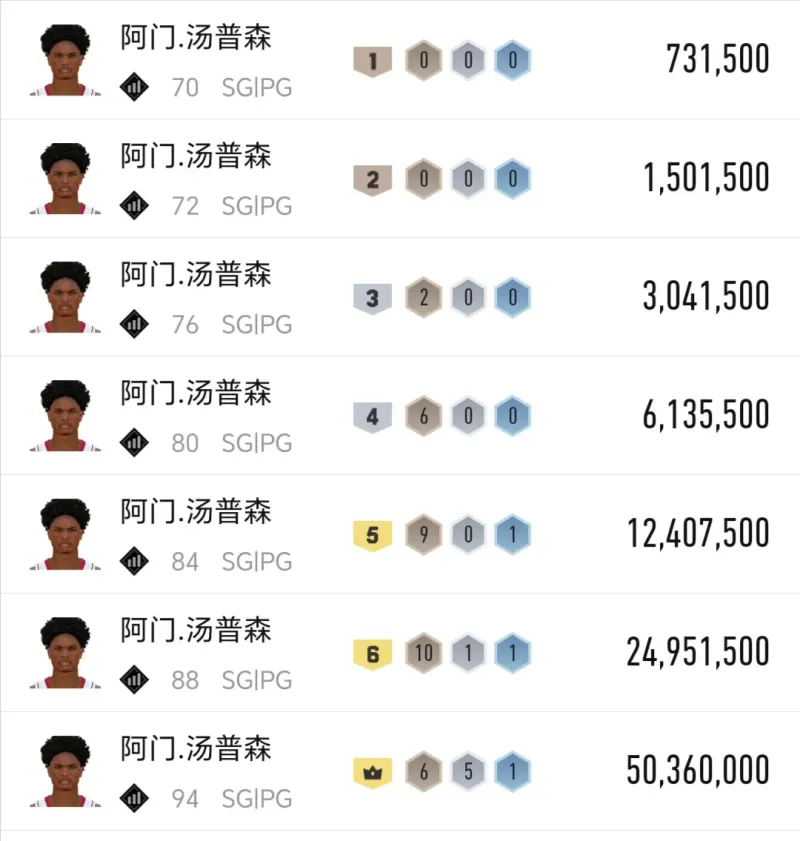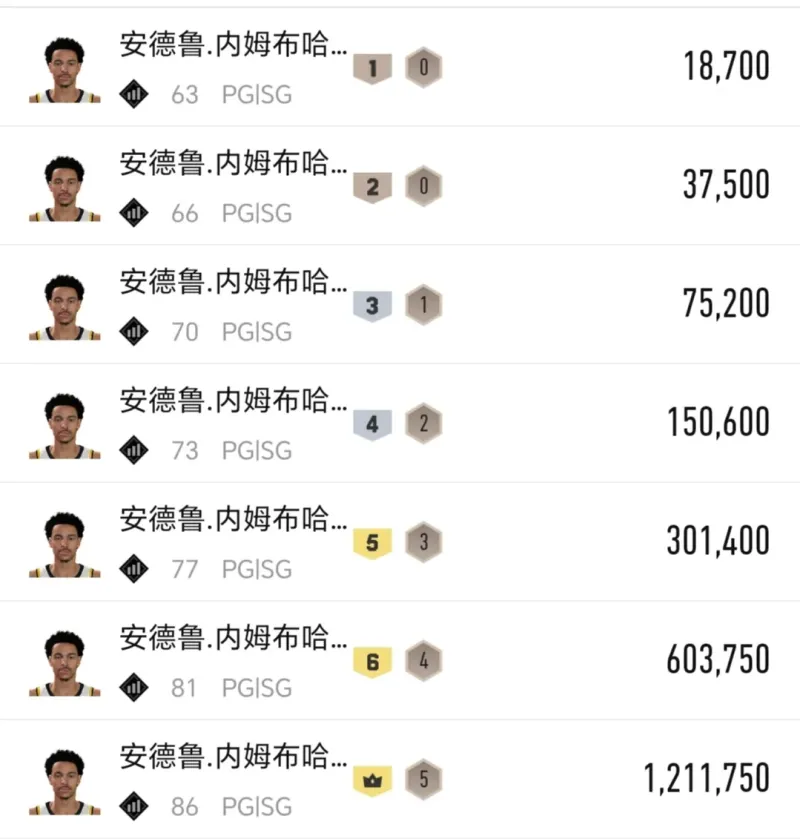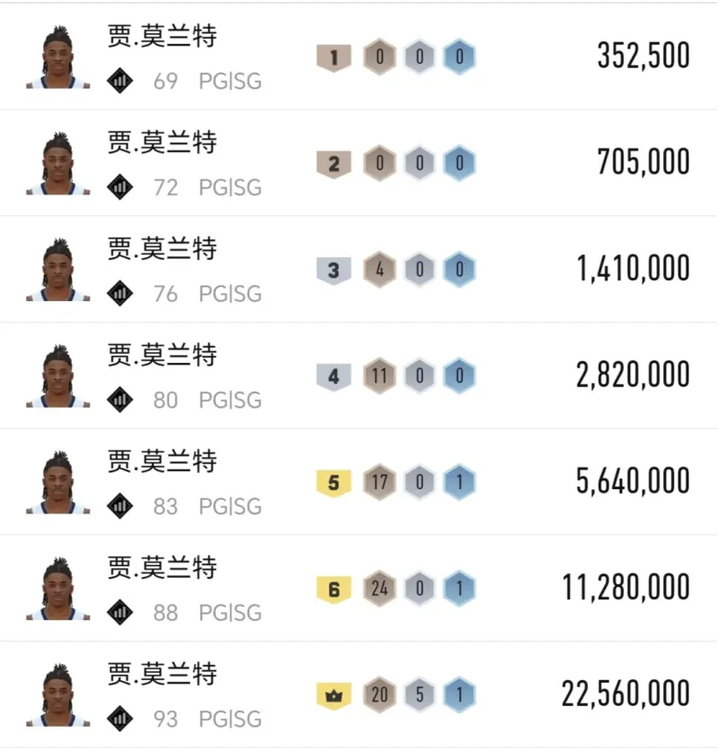 賽季開(kāi)始時(shí)滿突身價(jià)2400萬(wàn)左右,如今滿突身價(jià)1600多萬(wàn),本賽季球隊(duì)?wèi)?zhàn)績(jī)依舊未見(jiàn)明顯提升,個(gè)人表現(xiàn)只能說(shuō)偶有亮眼,游戲里徒有優(yōu)質(zhì)動(dòng)作包,等了一年又一年,未見(jiàn)實(shí)質(zhì)性增強(qiáng)。