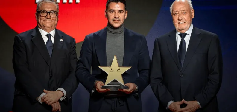 在同一場(chǎng)地內(nèi)的還有巴塞羅那足球俱樂部的副主席拉法-尤斯特,頒獎(jiǎng)典禮的聯(lián)合主持人赫拉德-羅梅羅和維克托-納瓦羅想就此可能的轉(zhuǎn)會(huì)詢問他,甚至遞給他一支筆,開玩笑說如果他愿意可以現(xiàn)場(chǎng)簽約。