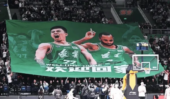 在比賽開賽前,遼寧體育館的斗屏播放了一段短片,回顧張鎮(zhèn)麟、弗格與遼籃將士并肩作戰(zhàn)的崢嶸歲月,重溫那些為遼寧籃球拼搏奮斗的閃光時刻。在視頻結(jié)束的瞬間,北區(qū)看臺的中間位置赫然出現(xiàn)了印有效力遼籃時期張鎮(zhèn)麟和弗格形象的巨幅TIFO,全場爆發(fā)出一陣熱烈的掌聲和歡呼聲,歡迎兩位老朋友張鎮(zhèn)麟、弗格回家!
