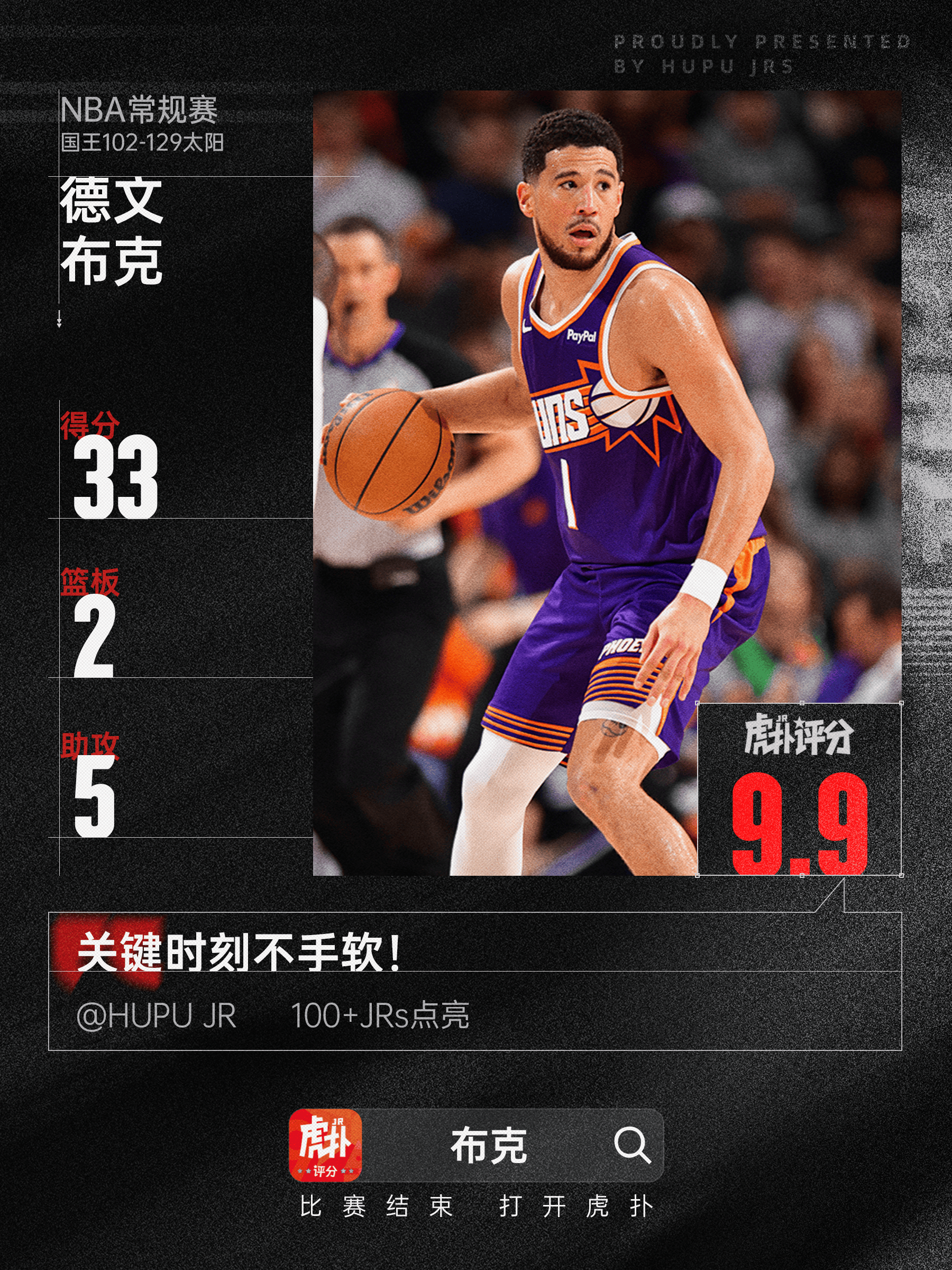 本場(chǎng)比賽,流言籃板太陽(yáng)球員德文-布克出戰(zhàn)27分鐘,板節(jié)布克21投13中,全場(chǎng)其中三分球6投1中,中分中砍助攻罰球7投6中,下分得到33分2籃板5助攻。流言籃板