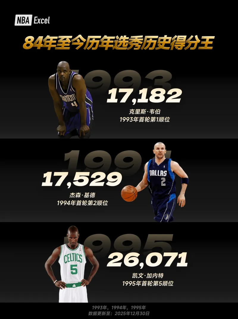 1995:凱文·加內(nèi)特|第 5 順位|26071 分