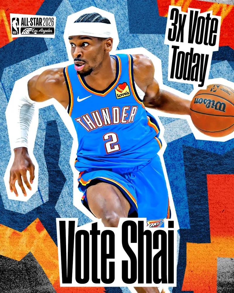 虎撲12月22日訊 今日,雷霆社媒發(fā)布謝伊-吉爾杰斯-亞歷山大的為投全明星造勢(shì)海報(bào),并配文: