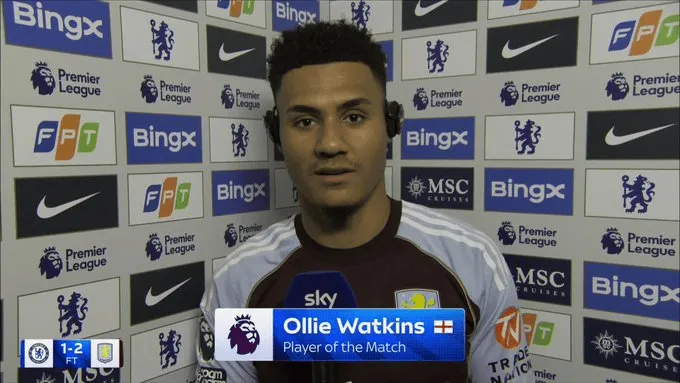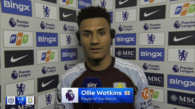 虎撲12月28日訊 阿斯頓維拉中鋒奧利-沃特金斯在2-1逆轉(zhuǎn)切爾西的賽后,接受天空體育瞬采。