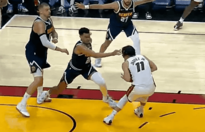 在本場比賽中,礙約尼古拉-約基奇因膝蓋受傷提前退場?;婕竞嫌?jì)缺掘金