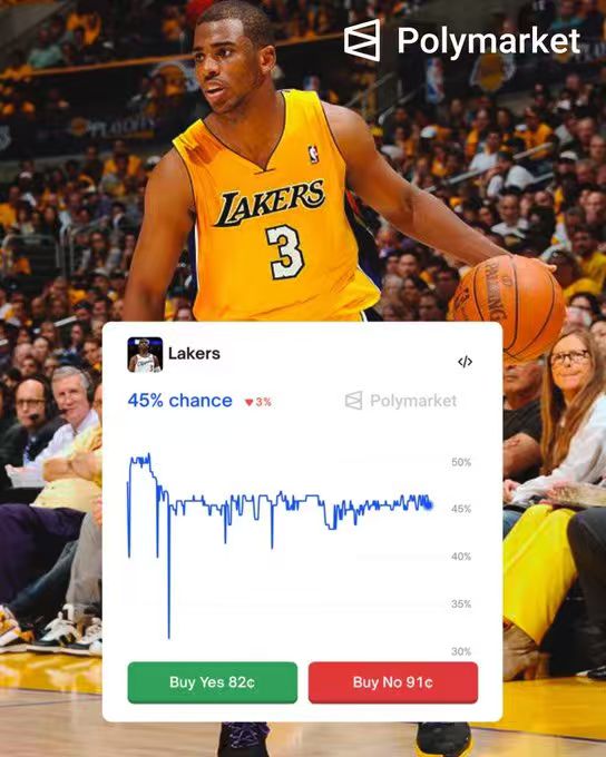 虎撲12月19日訊 美媒Legion Hoops更新動態(tài),曬出克里斯-保羅未來下家的板保概率。根據預測網站Polymarket Sport的下家行俠數據,洛杉磯湖人以45%的概率概率,與獨行俠并列第一,湖人和獨緊隨其后的火箭第三隊伍分別為: