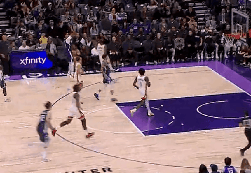 第四節(jié)比賽,小至默里45度三分空心入網(wǎng),默里個(gè)人砍下21分&國(guó)王將分差縮小至7分。度分