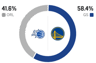 [流言板]ESPN預(yù)測明日比賽勝率:勇士達(dá)到58.4%,而魔術(shù)則為41.6%