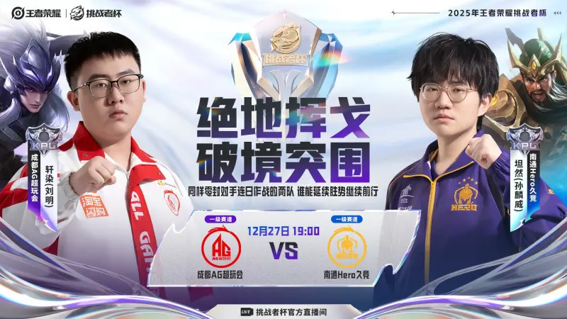 2025年12月27日20:00 成都AG超玩會 vs 南通Hero久競