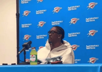 賽后,雷霆球員杰倫-威廉姆斯接受媒體采訪,談及勇士球員斯潘塞對(duì)球隊(duì)替補(bǔ)席說的話,杰倫-威廉姆斯表示: