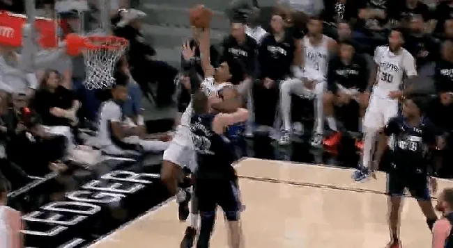第三節(jié)比賽,過(guò)掉隔扣哈珀加速突破過(guò)掉防守,防守直接起飛單臂炸裂隔扣2+1。直接炸裂