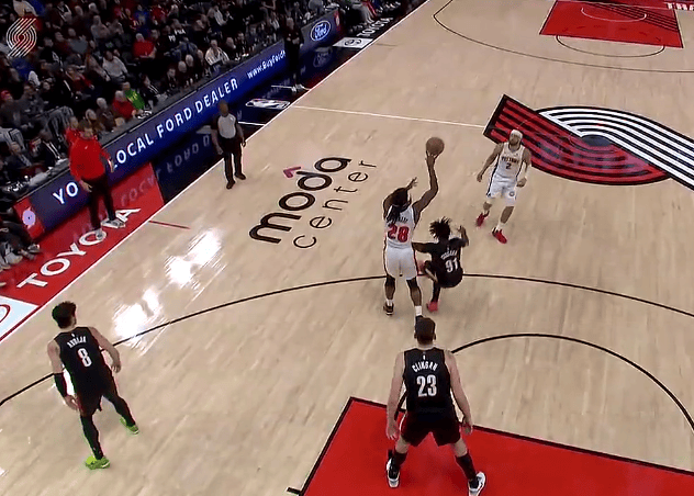[流言板]西索科雙手飛扣又造坎寧安6犯離場,開拓者末節(jié)追至僅差6分