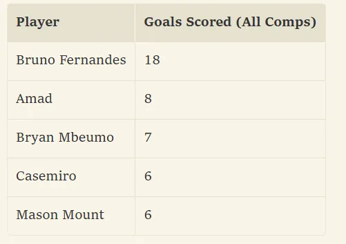 以下為曼聯(lián)球員本年度的各項數(shù)據(jù)排名,統(tǒng)計節(jié)點截至球隊1-0戰(zhàn)勝紐卡斯爾聯(lián)一役。