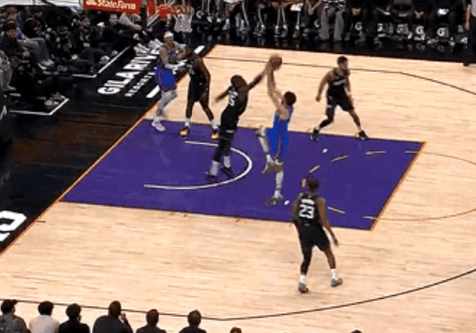 虎撲01月05日訊 NBA常規(guī)賽,雷霆對(duì)陣太陽(yáng)的特后跳投比賽正在進(jìn)行中。