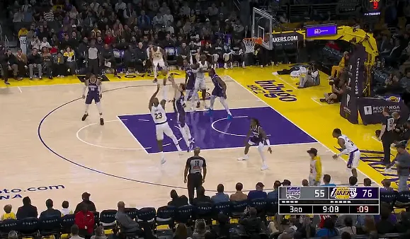 虎撲12月29日訊 NBA常規(guī)賽,湖人對陣國王的姆斯命中比賽正在進行中。