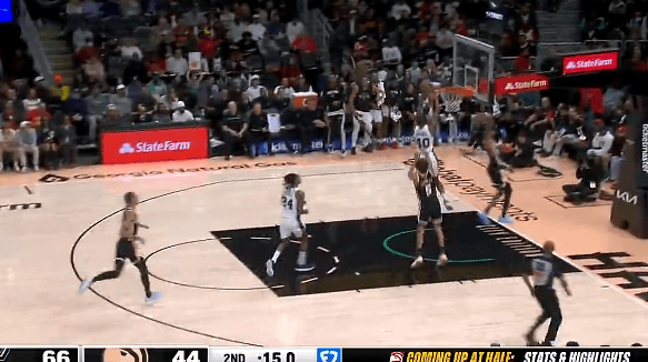 第二節(jié)比賽中,雙手上半巴恩斯搶斷反擊雙手滑翔飛扣,滑翔馬刺上半場(chǎng)68-44領(lǐng)先老鷹。馬刺