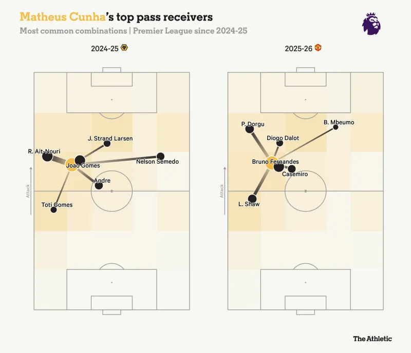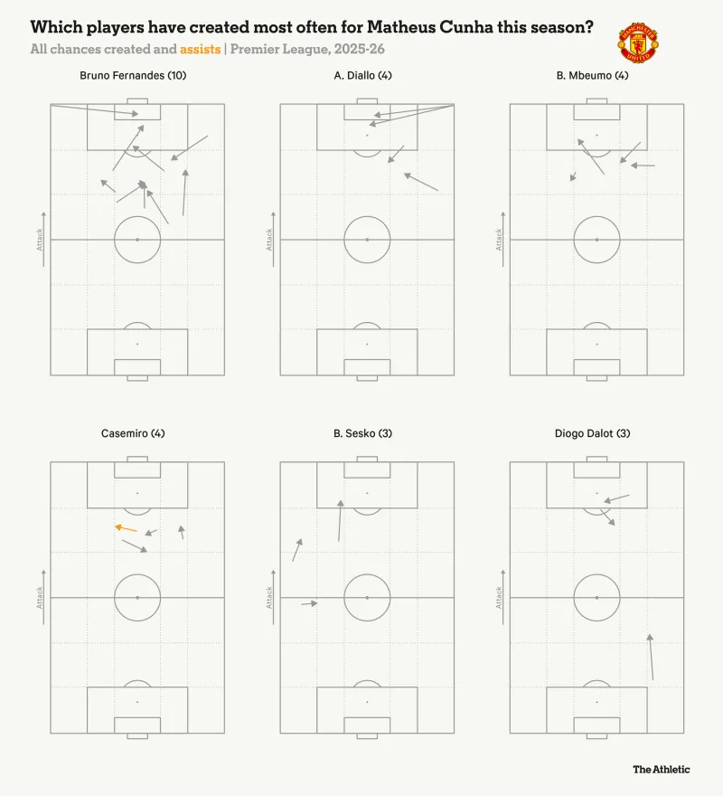 值得一提的是,多爾古與達(dá)洛特本賽季接庫(kù)尼亞傳球時(shí),都會(huì)前插至進(jìn)攻縱深位置。曼聯(lián)2025/26賽季的表現(xiàn),很大程度上取決于這兩位翼衛(wèi)的發(fā)揮,以及他們?cè)谇皥?chǎng)三區(qū)的攻防效率。