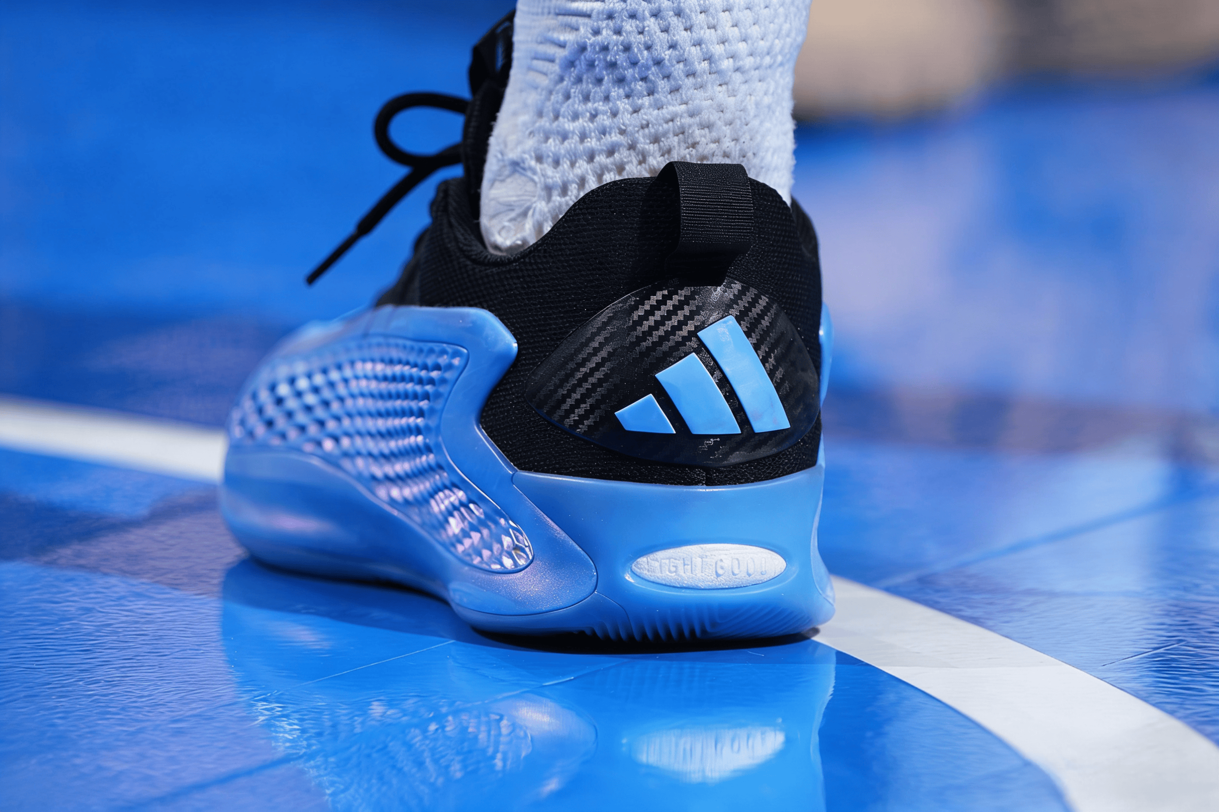 比賽中,姆穿埃奇庫(kù)姆上腳藍(lán)色adidas AE1 Low。著藍(lán)