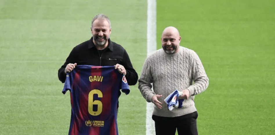 與上賽季兩回合德比的情況類似,本次主帥會面依然保持著友好輕松的氛圍。兩人在場邊親切交流、互致祝福,最后以弗里克的一個擁抱結(jié)束?,F(xiàn)場還出現(xiàn)了一個有趣的小插曲:當雙方展示各自球隊球衣時,弗里克發(fā)現(xiàn)自己手中的球衣背后印著加維的名字,由于加維目前仍因傷無法出戰(zhàn)德比,弗里克露出了一個略帶戲謔的玩笑表情。這一細節(jié)為賽前會面增添了幾分輕松色彩。