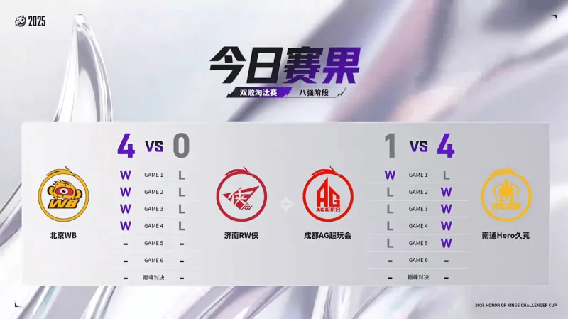 ?2025王者榮耀挑戰(zhàn)者杯雙敗淘汰賽D6比賽結(jié)束,果北來(lái)看看【今日賽果】吧!下首