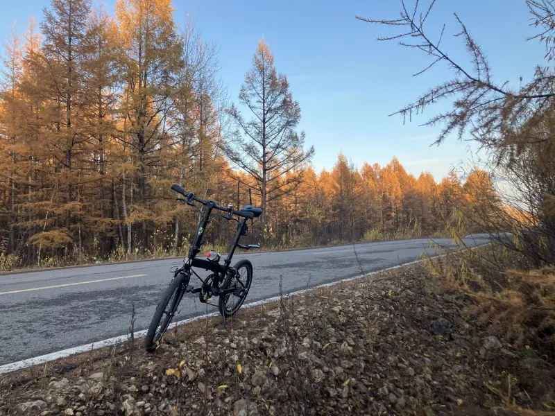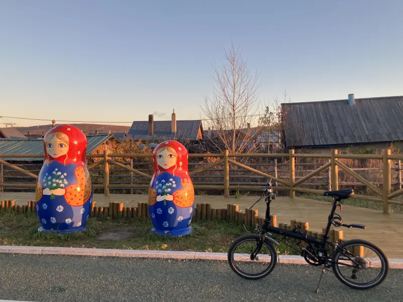 額爾古納到根河走老國(guó)道,沿河修建的森林公路。中午在森工餐廳吃了這次旅行中最地道的鍋包肉,下午走根白線,深入大興安嶺腹地,林業(yè)小鎮(zhèn)莫爾道嘎。莫爾道嘎的房車(chē)營(yíng)地有慢充,一夜可以充滿。路邊不好停車(chē),騎自行車(chē)探索更方便。這次東北之行給后備箱塞了個(gè)大行P8折疊車(chē),4+2的體驗(yàn)很好。