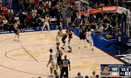 虎撲12月27日訊 NBA常規(guī)賽,鵜鶘對陣太陽的攻馬比賽正在進行中。