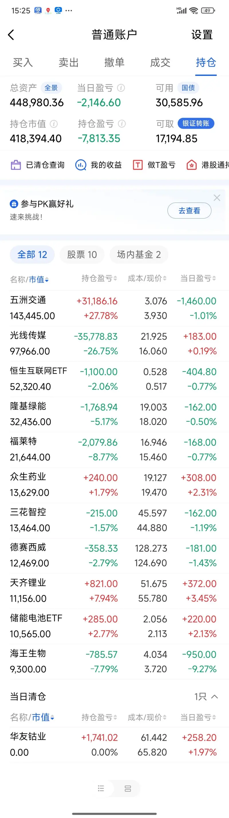 操作不多,上午止盈了華友,空出一點倉位。明后天找機會買回華友或者其他的鋰礦股。