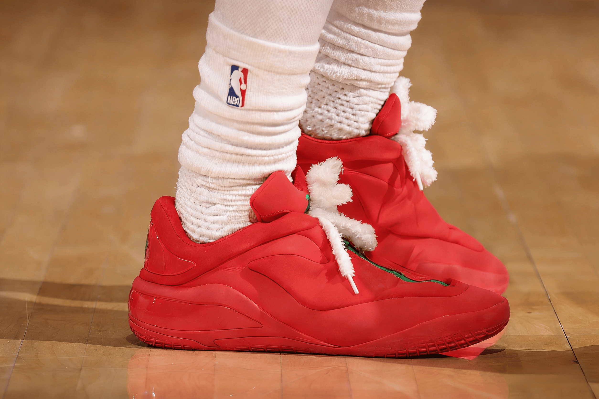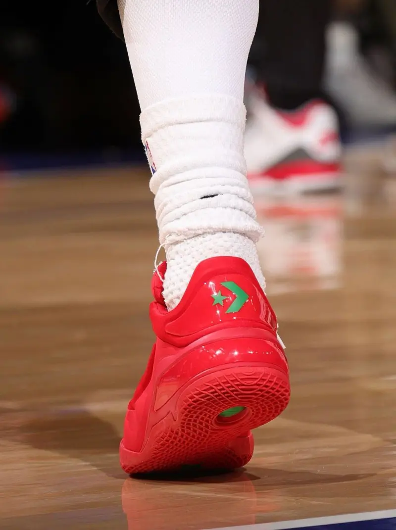比賽中,克拉克森上腳圣誕配色Converse Shai001。