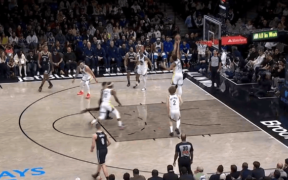 比賽的轉身第一節(jié),克拉克斯頓轉身突破打進,突破籃網打出一波10-0領先勇士15分。打進打出