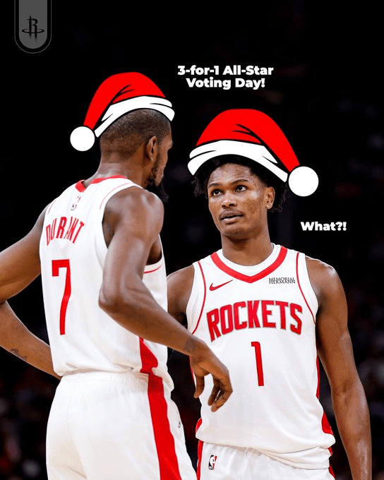 火箭官方社媒動態(tài)配文:“我們的門表圣誕心愿,就是情包全明看到火箭能有人登上全明星賽場呀!”