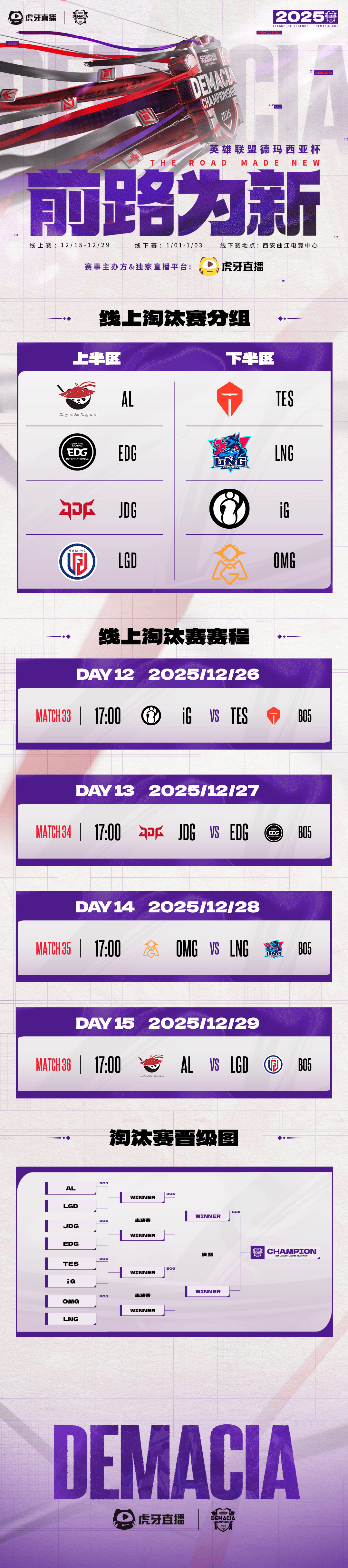 虎撲12月25日訊 2025德瑪西亞杯線上單敗淘汰賽分組來襲