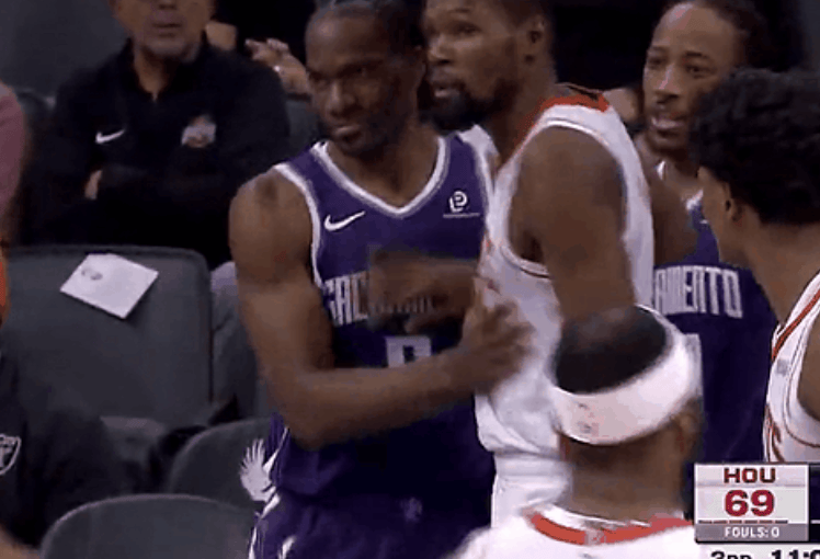 杜蘭特防守中撞倒阿丘瓦,隨后主動(dòng)走向后者友好示意