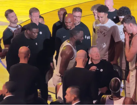 據(jù)記者Brett Siegel報(bào)道,在一次暫停期間,格林似乎與主教練史蒂夫-科爾發(fā)生了激烈爭執(zhí)。當(dāng)時(shí)科爾似乎示意格林返回更衣室,隨后格林離場,之后穿著熱身服回到了替補(bǔ)席。
