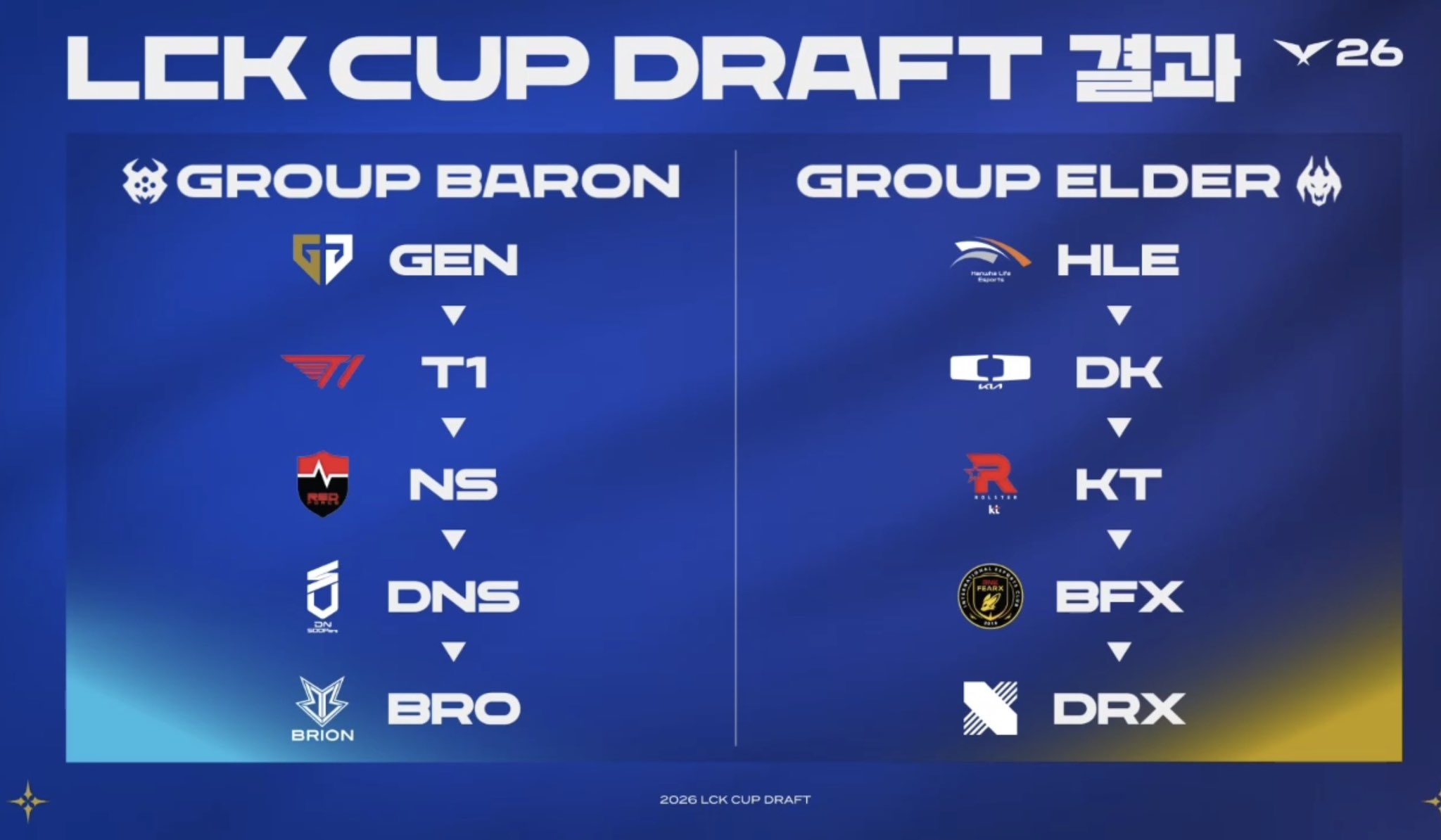 [情報(bào)站]2026LCK CUP分組結(jié)果出爐:GEN、T1同組,HLE、DK同組