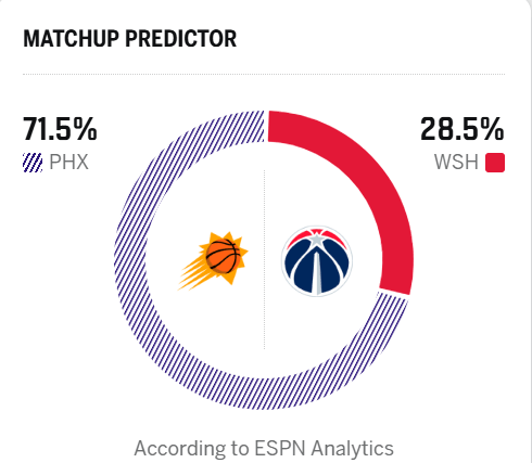 [流言板]ESPN預(yù)測明日比賽:太陽勝率71.5%,奇才勝率28.5%