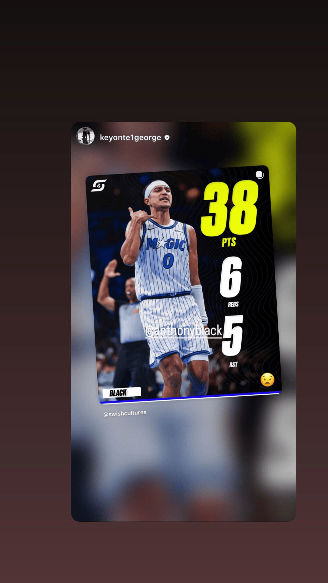 本場比賽,魔術(shù)球員安東尼-布萊克出戰(zhàn)30分鐘,24投14中,其中三分球11投7中,罰球6投3中,得到38分6籃板5助攻2搶斷,得分創(chuàng)下生涯新高。